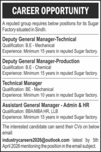 Sugar Factory Jobs in Sindh Latest Job Opportunity 2026 – Don’t Miss This Chance! Full Time